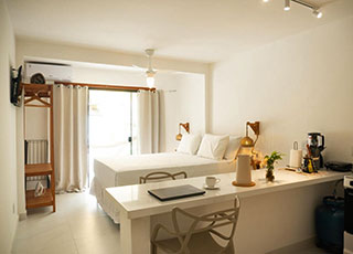 Apartamentos completos, mobiliados com cozinha equipada, muito bem localizados, a poucos metros das praias urbanas e do centro turístico, com internet de boa velocidade para quem trabalha em home office.