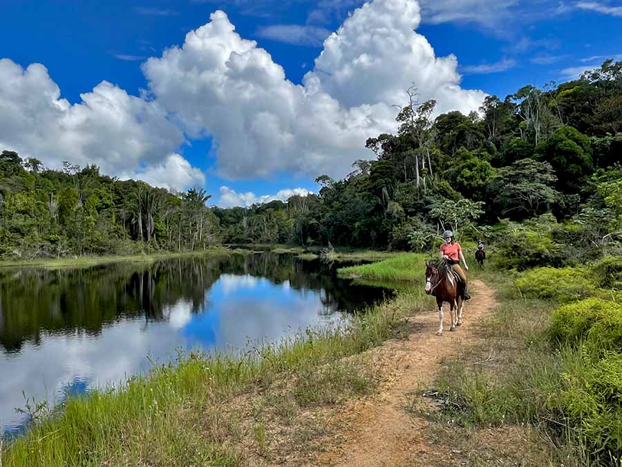 Estes longos circuitos ao redor da fazenda levam você para o coração da floresta primária e áreas arenosas livres de qualquer atividade humana muito propicias a galopes muito longos. Você vai sentir a verdadeira natureza das origens. O retorno se faz dentro da fazenda pelo Jungle Trail, uma viagem através da Mata Atlântica mais preservada da região cobrindo uma área de 25ha , reserva particular do Ecoranch incluindo o vale escondido do Cupuaçu.