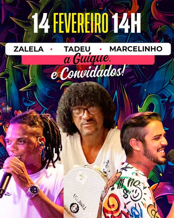 Bloco É do Samba, 14 anos! Dia 14 de fevereiro, a partir das 14h com Zalela, Marcelinho e Tadeu, a Guigue e convidados.