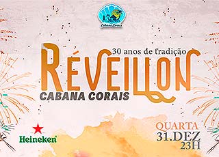 A Cabana Corais está localizada em um paradisíaco espaço a beira mar na Praia da Concha. Com 30 anos de tradição em eventos, oferece a alegria de uma festa em meio a energia da mais bela natureza! Com uma localização que possibilita ir a pé ao evento, evitando transtornos. Haverá queima de fogos, Dj´s e bandas, trazendo um repertório bem variado para garantir muita diversão! Evento Open bar.Praia da Concha - Itacaré