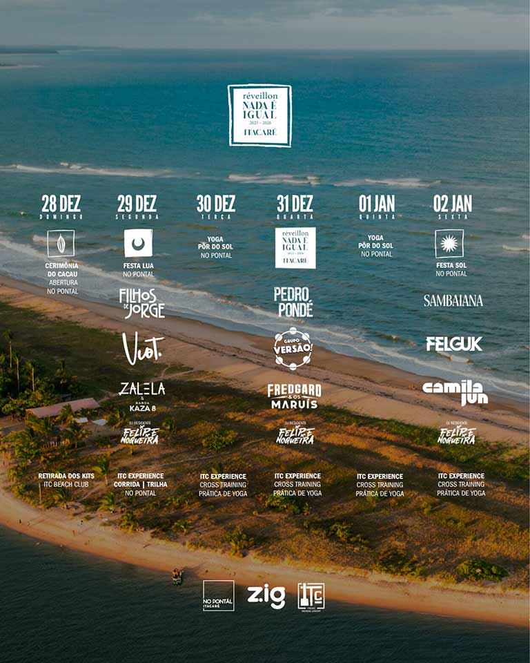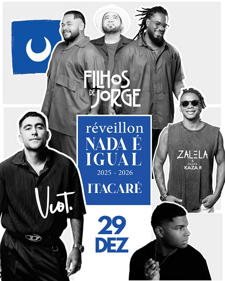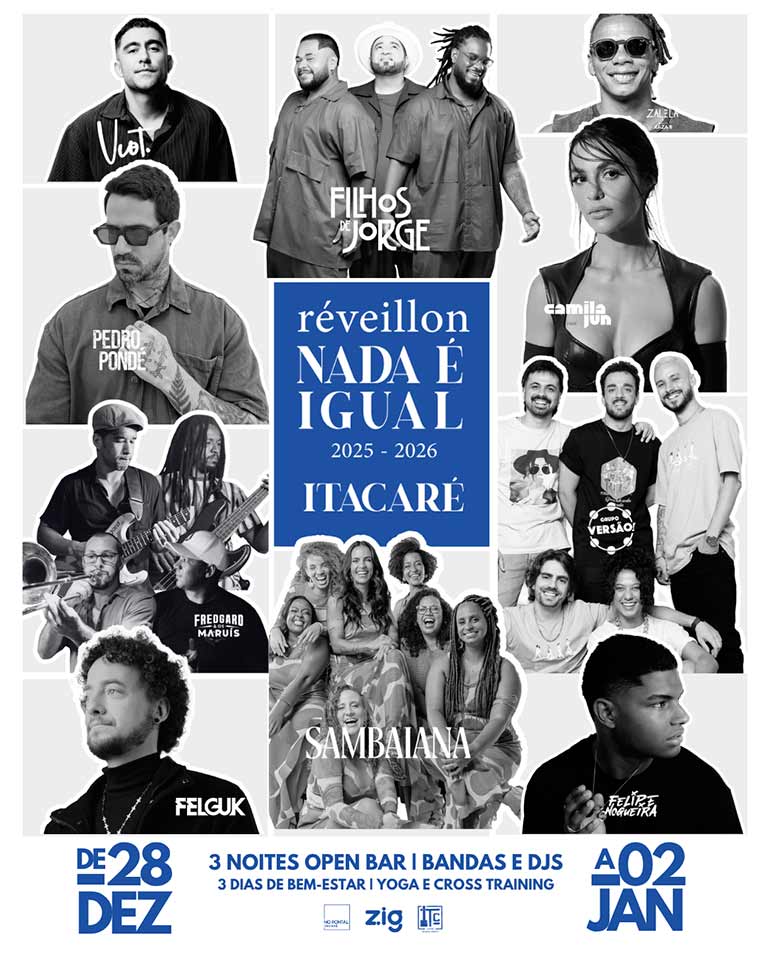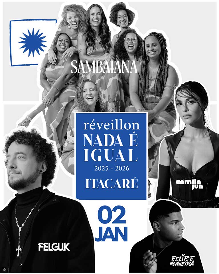Um novo Réveillon se apresenta no sul da Bahia. Entre o rio e o mar, abraçado pela Mata Atlântica, a chegada de barquinho, inclusa no ingresso, se transforma em um ritual Nada é Igual. São 6 dias de experiências completas: Dia: beach club, esportes e uma programação completa de bem-estar. Noite: festas open bar, bandas, DJs e encontros que só acontecem aqui. Compre através do link!